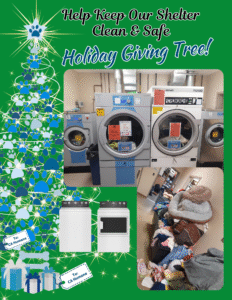 Our shelter washes 20–30 industrial loads daily to keep more than 100 kennels clean and provide fresh bedding for every animal. Industrial machines are a critical need on our wishlist each year—they’re essential, but costly.
