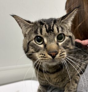 Hello there! My name is Poe, and it’s so nice to meet you! I’ll admit, I can be a little shy when I first meet new people. Big changes and unfamiliar faces can make me a bit cautious at first, so I might take a little time to watch you from a safe spot while I figure things out. But once I realize that you’re a friend and not something to worry about, my true personality starts to shine, and that’s when you’ll see just how sweet I really am! With a little patience and kindness, I quickly warm up and become a gentle, affectionate companion who enjoys being around the people I trust. I just need someone willing to give me that little bit of time to feel comfortable, and I promise it’s totally worth it. One of my absolute favorite things in the world is climbing cat trees. The taller the better! I love perching up high where I can observe everything happening around me like the king of my castle. A cozy cat tree by a window would be my dream setup, perfect for relaxing, bird watching, and keeping an eye on my kingdom. I also get along really well with other cats and would likely enjoy having a feline friend around to keep me company. We could explore together, share the best napping spots, and hang out on the cat tree like a couple of pros. As for dogs…well, I’m not totally sure how I feel about them just yet. I haven’t had much experience with those big, waggy creatures, so slow introductions would definitely be the way to go. If you’re looking for a gentle, sweet boy who just needs a little time to come out of his shell, I might just be the Poe you’ve been searching for.