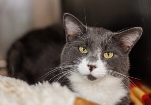 Hi there, I’m Rogue! I’m a certified sweetheart with a soft spot for chin scratches, seriously, they’re my love language. Are you looking for a loyal companion to keep your lap warm all winter long? I’ve been training my whole life for this moment! Cozy movie nights, quiet reading sessions, mid day cat naps, I’m ready for it all. Unfortunately, I’m not the biggest fan of other kitties. If you’re searching for a gentle, affectionate feline who will adore you just as much as you adore him, look no further! I’m already picturing us together!